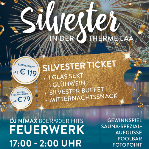 Mit Silvester-Buffet, Glühwein, Poolbar, DJ-Sounds und das Highlight: Riesenfeuerwerk!